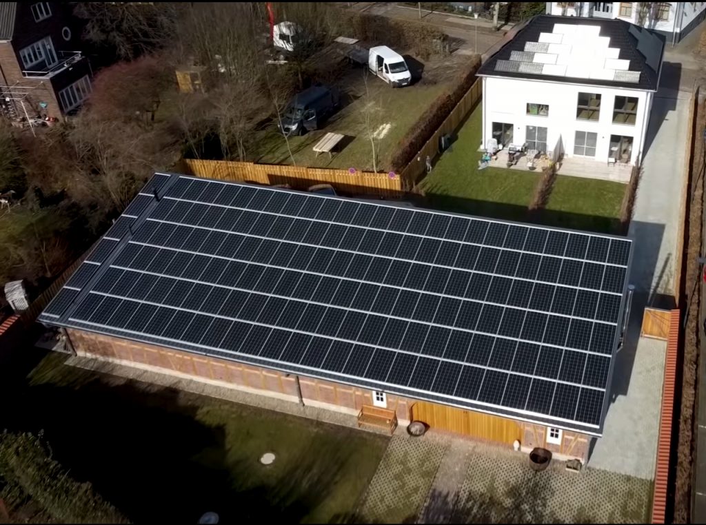 Doch dabei gibt es ein Problem: Keines der Gebäude verfügt über eine geeignete Dachfläche, um genügend Solarstrom zu produzieren. Auf der Suche nach Lösungen, stößt Lohmeyer auf die Youtube-Videos von Holger Laudeley. Es reift die Idee, ein weiteres Gebäude auf dem großen Grundstück zu bauen, das für eine große Photovoltaik-Anlage für das Rosenhof-Quartier Platz bietet. So entsteht ein großes, Carport-ähnliches Gebäude, das eine große Dachfläche bietet.